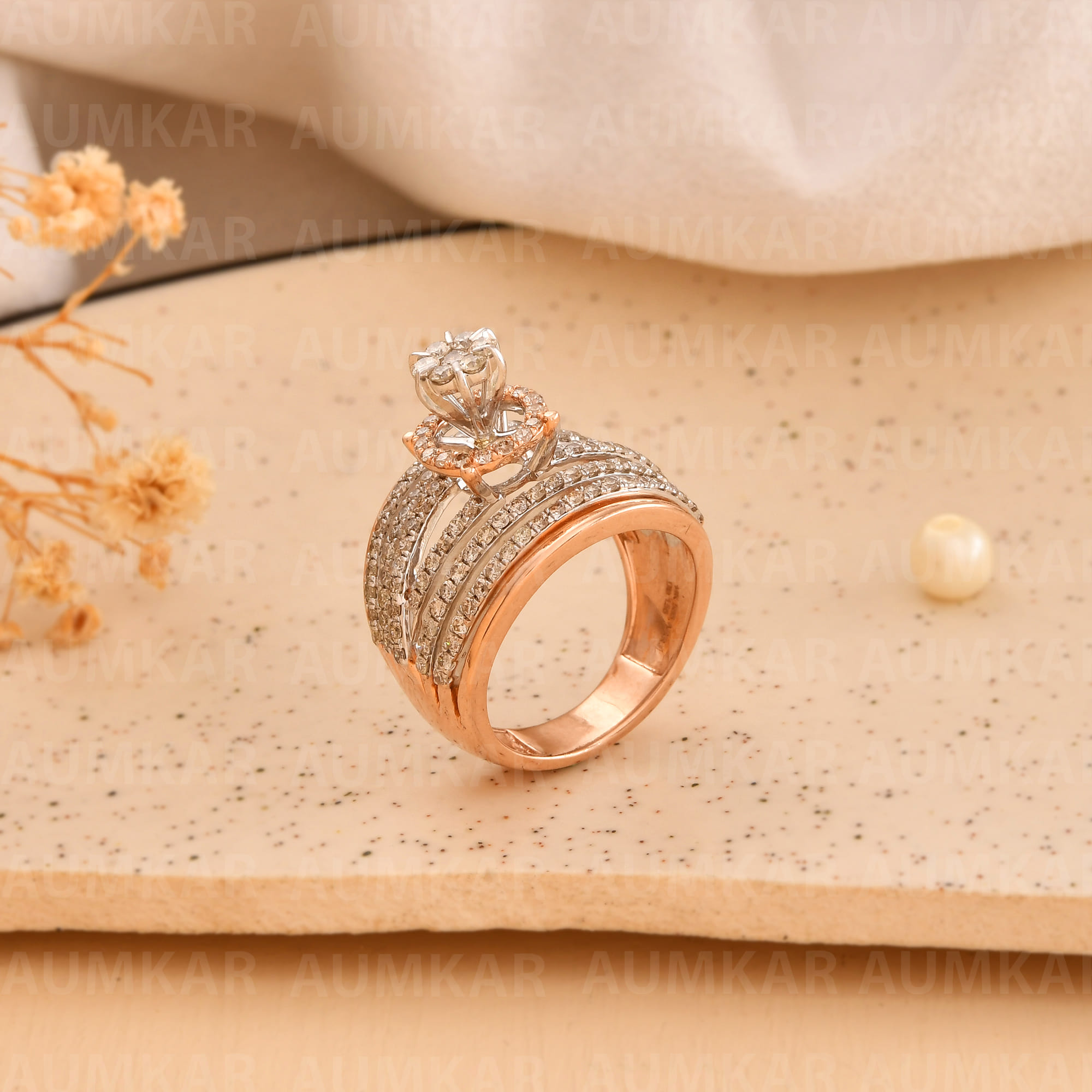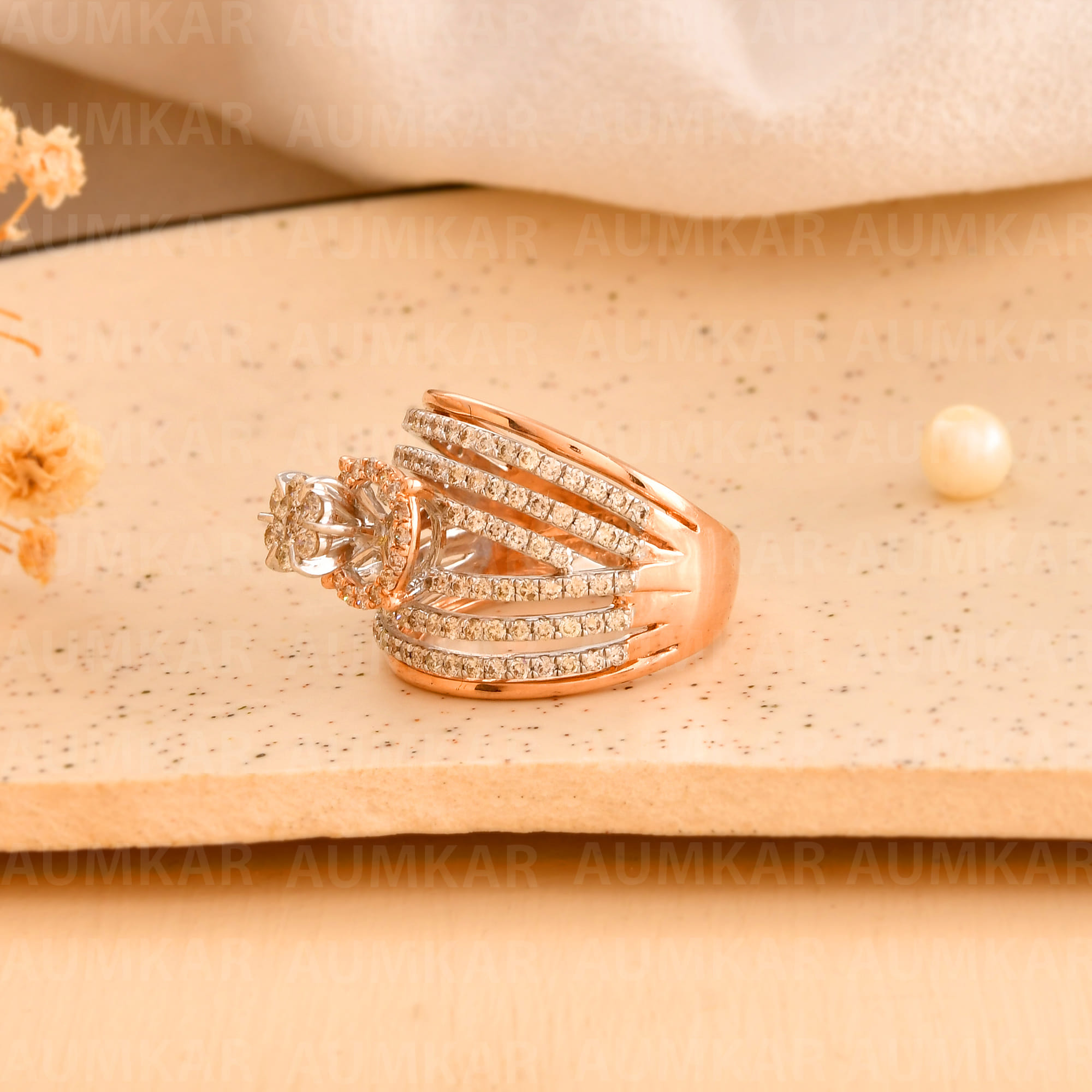 Rose Gold Diamond Cocktail Ring For Women Wedding Band