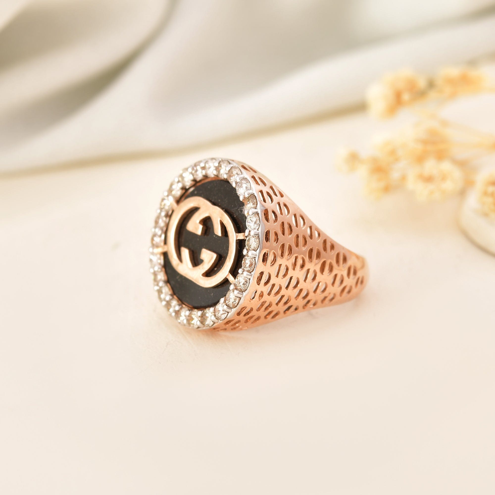 Luxury Designer Logo Ring With Diamonds For Men