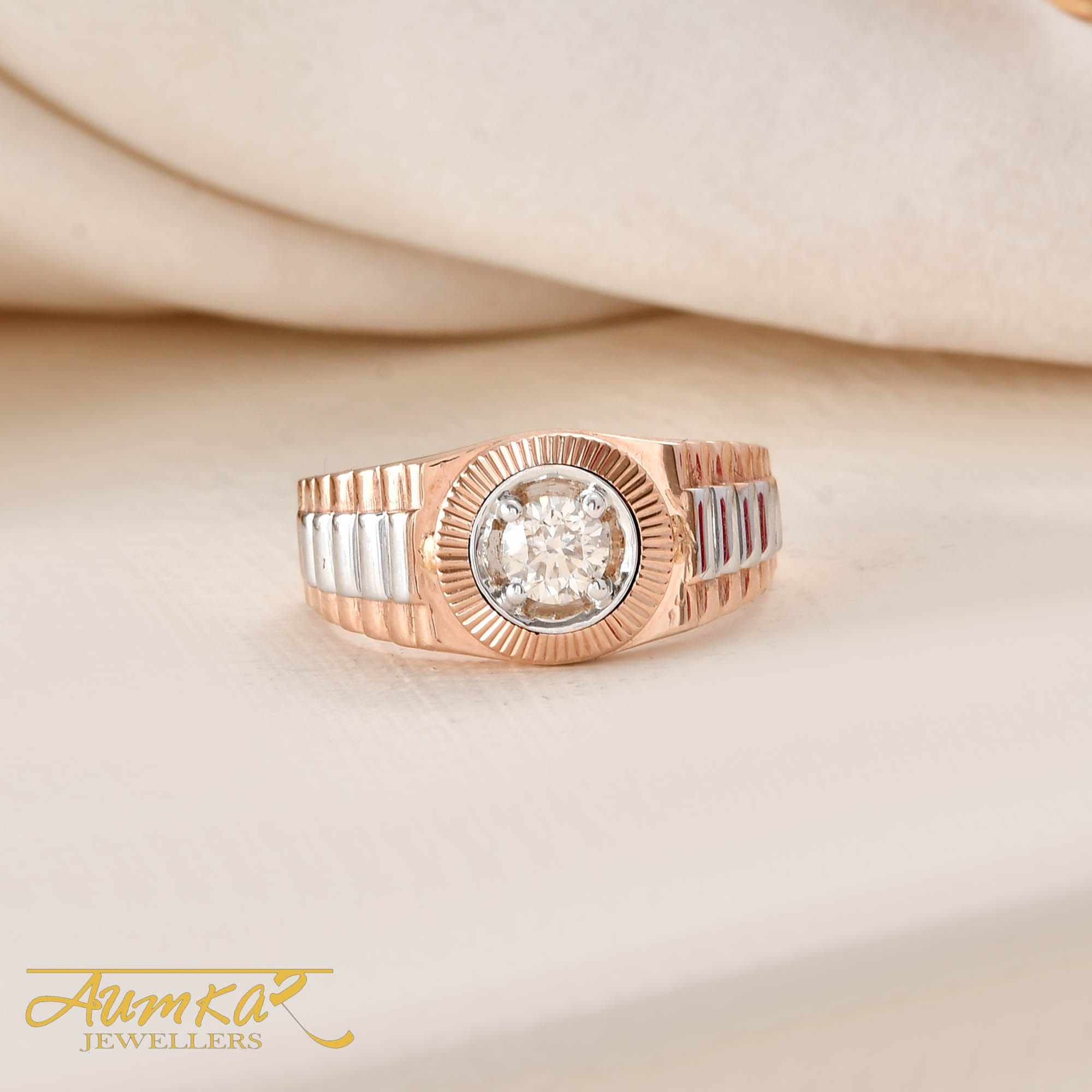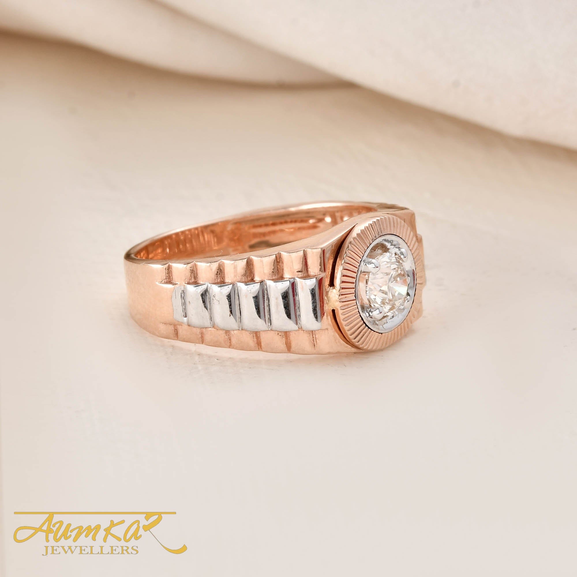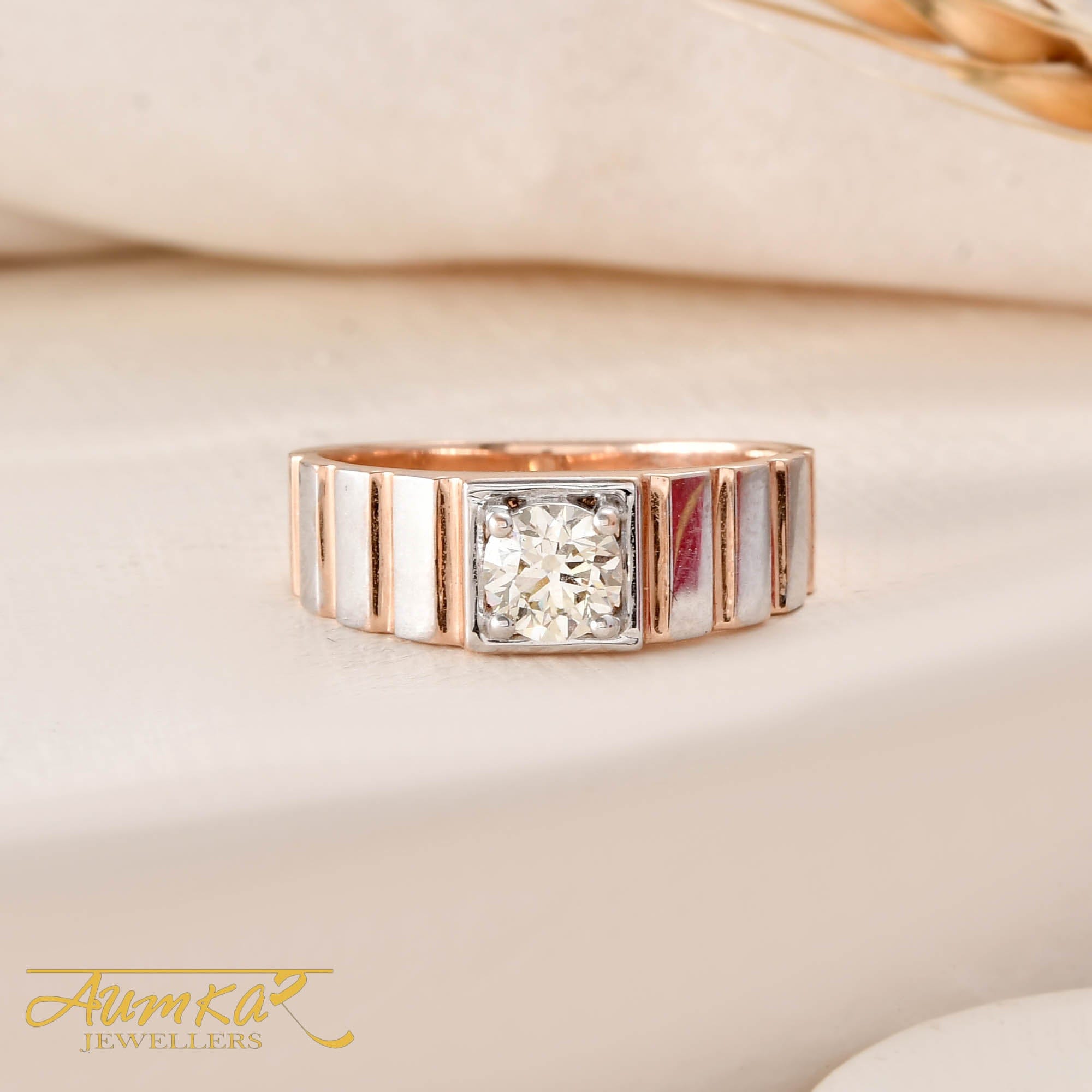 Men's Diamond Solitaire Ring Rose Gold Wedding Band