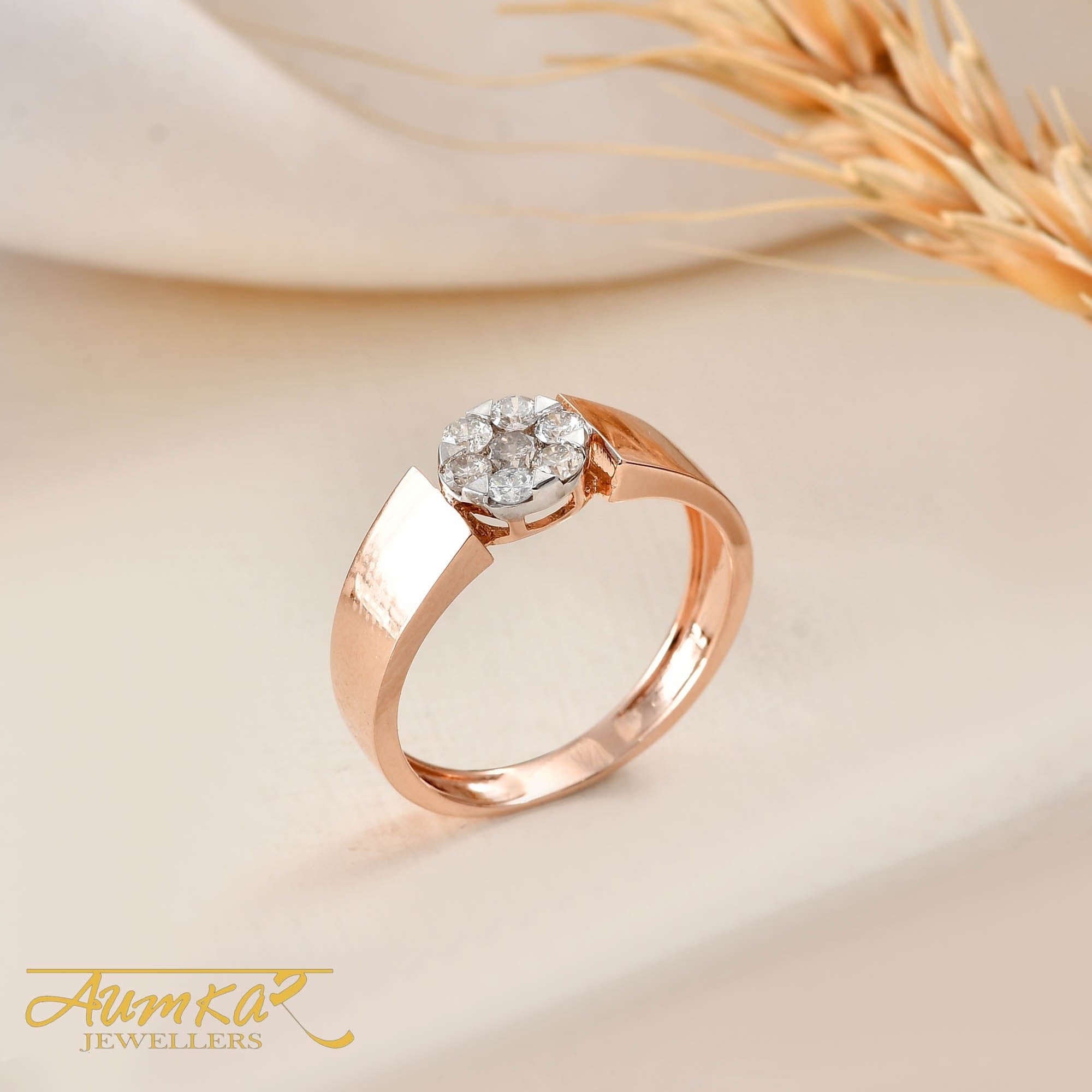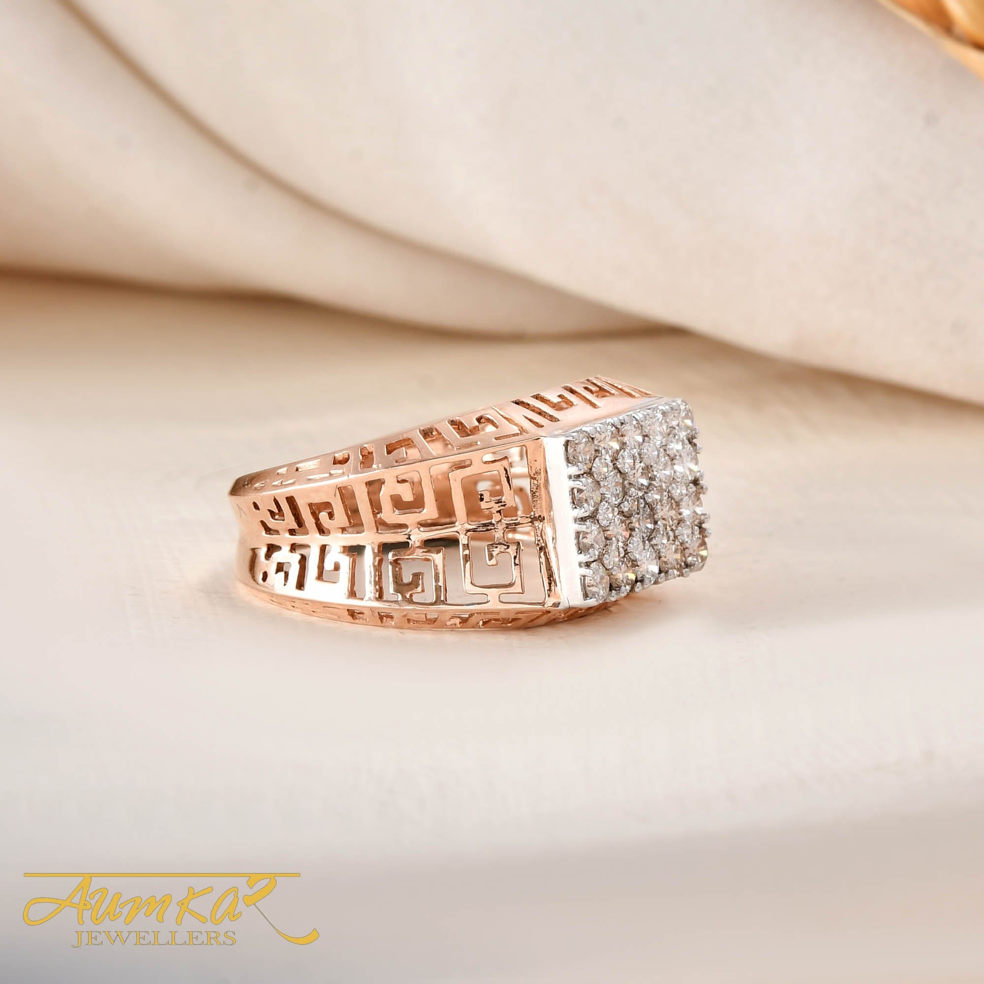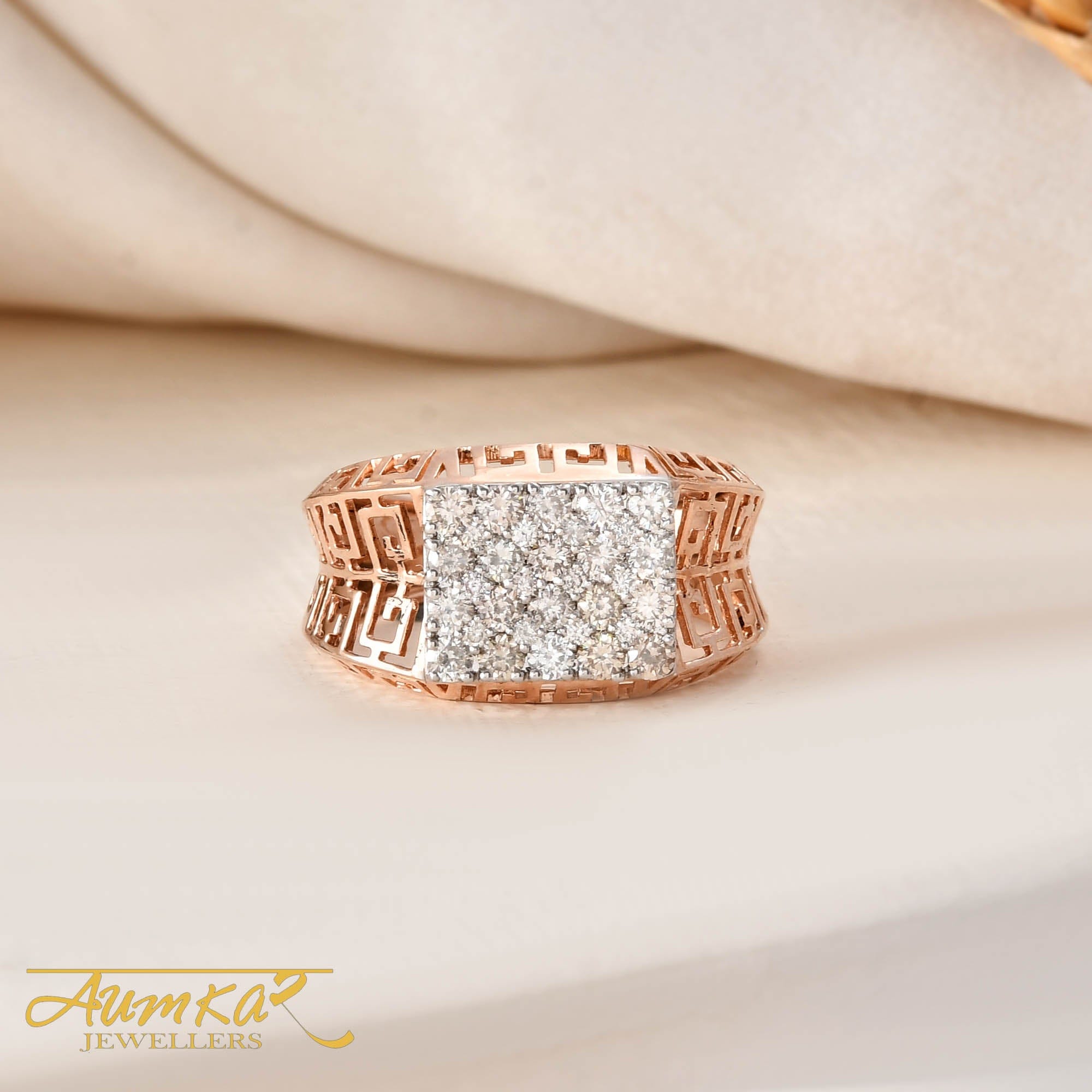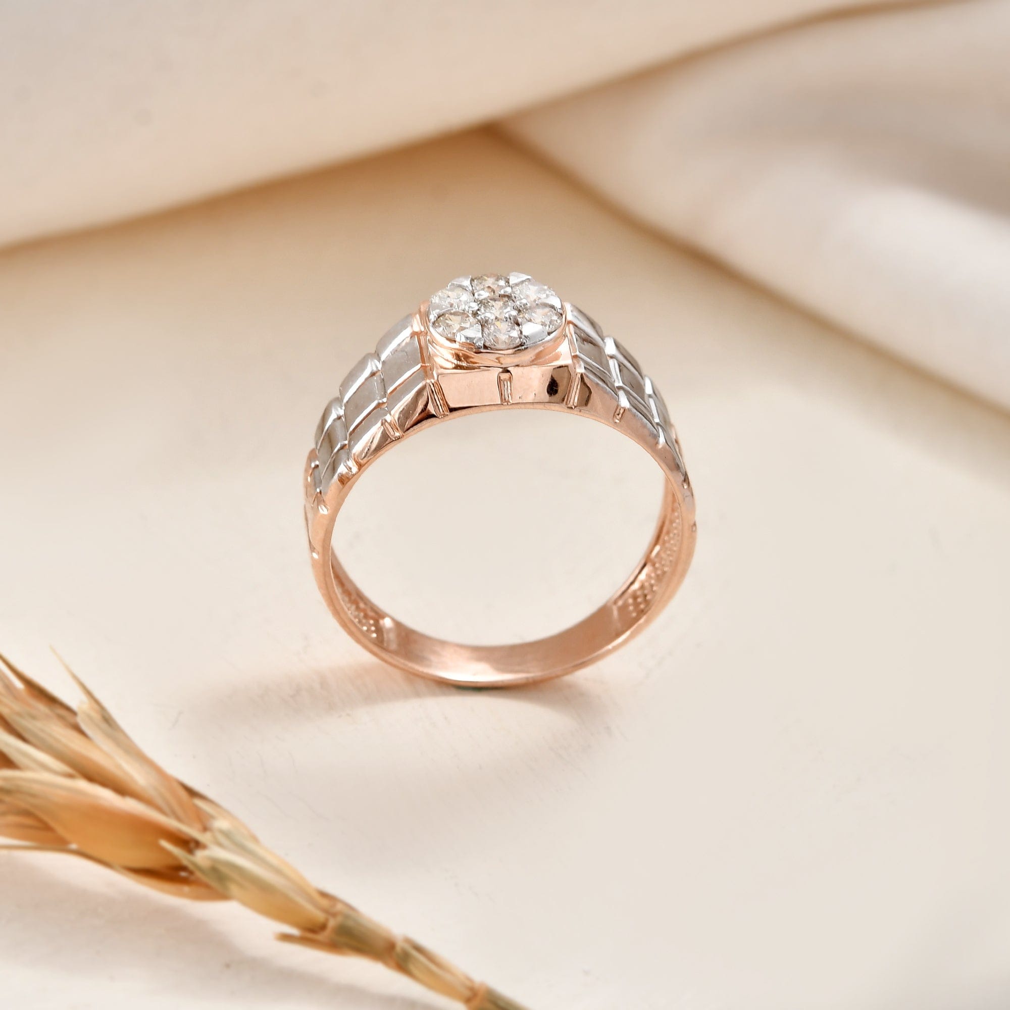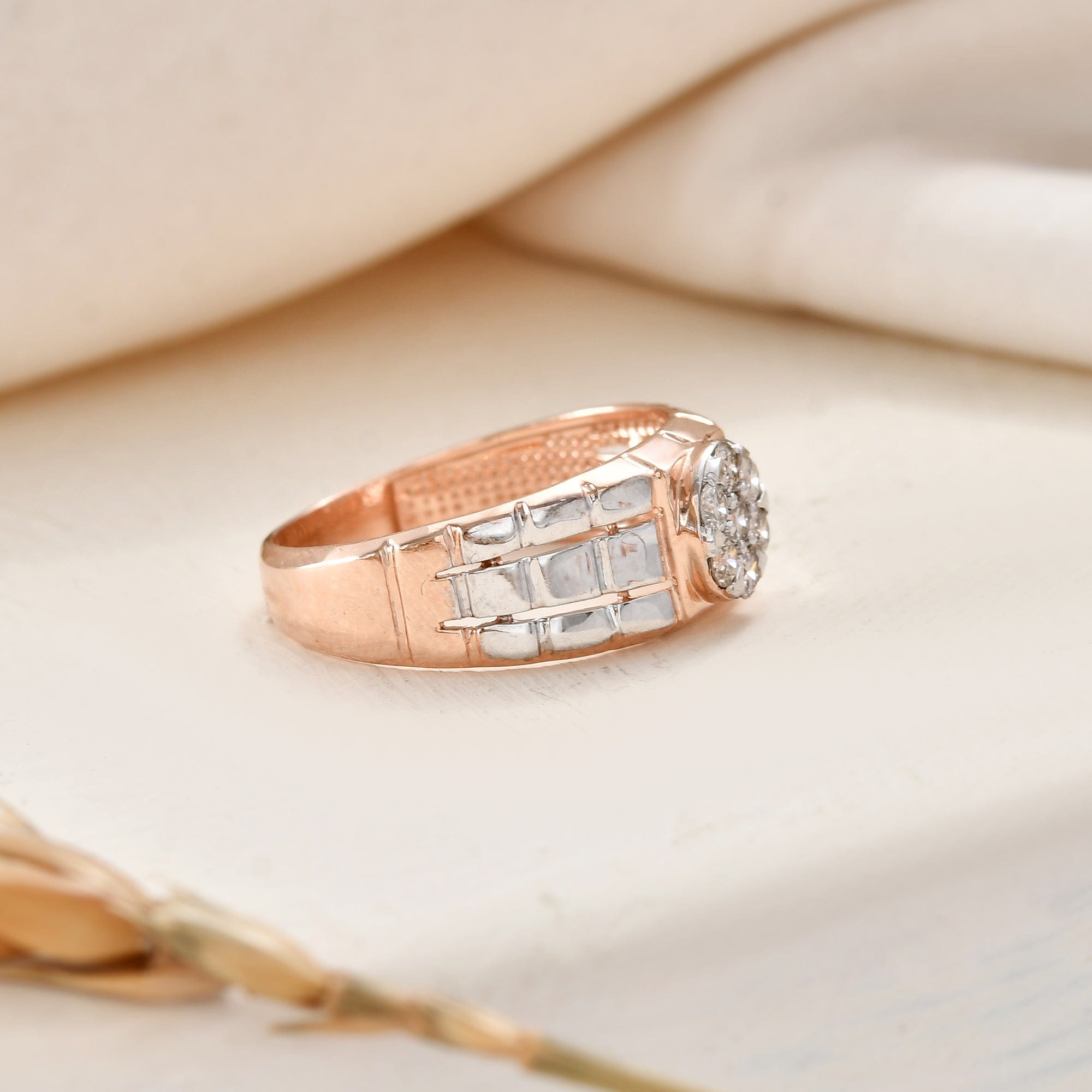 Men's Diamond Cluster Ring Rose Gold Wedding Band