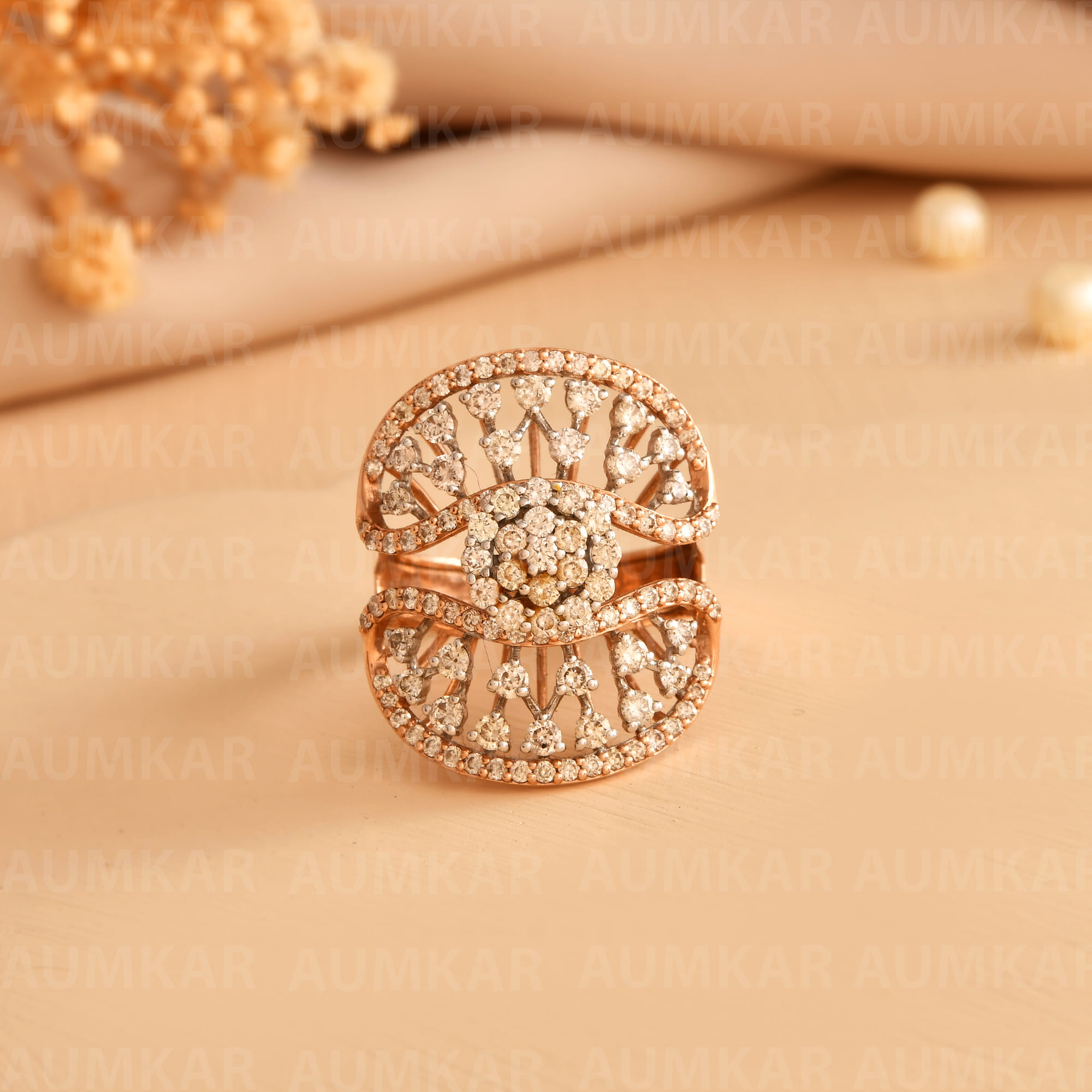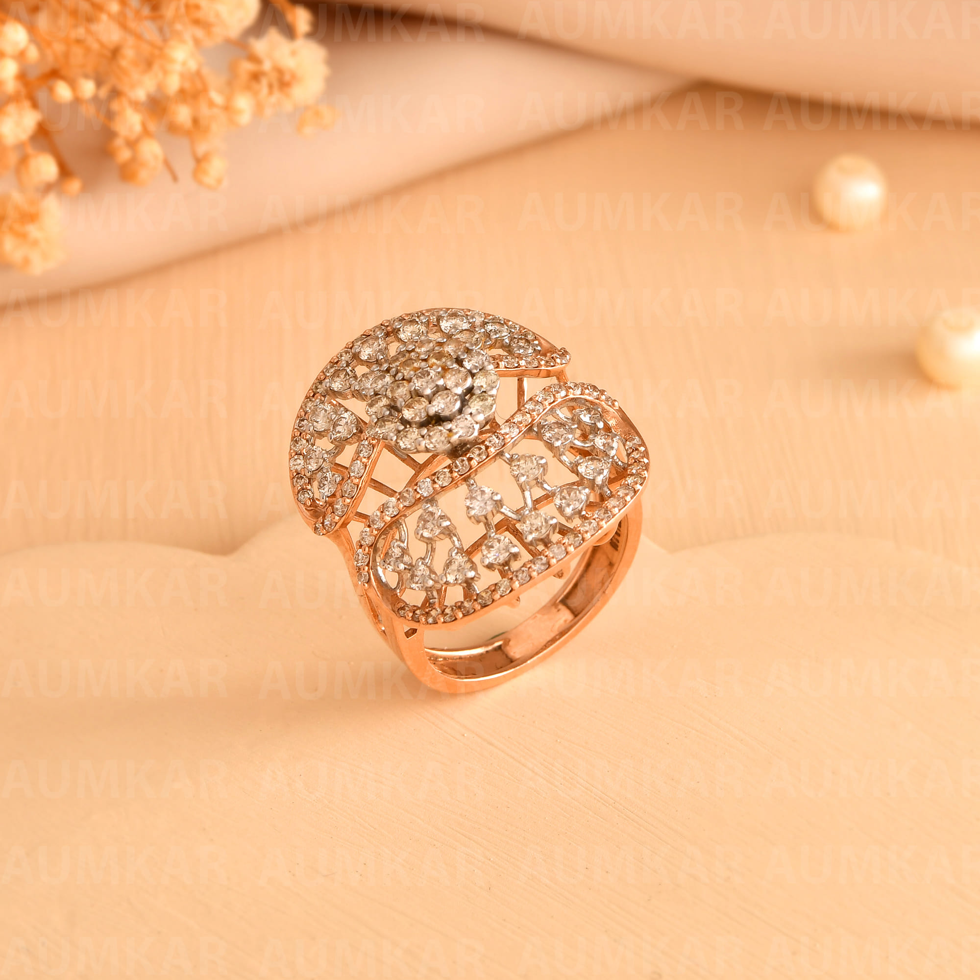 Women's Diamond Cocktail Ring Floral Design Wedding Band