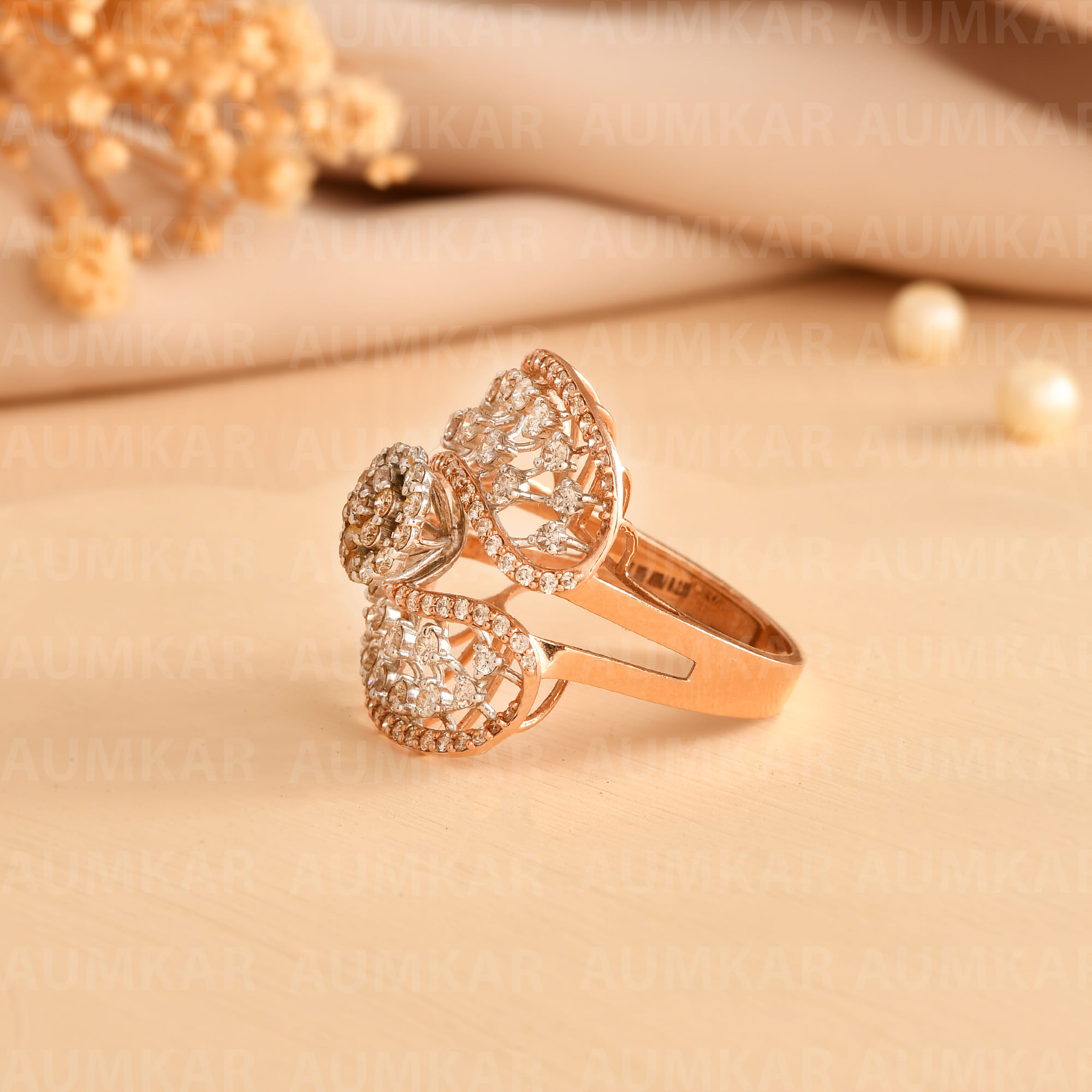 Diamond Bypass Ring For Women Rose Gold Engagement Gift