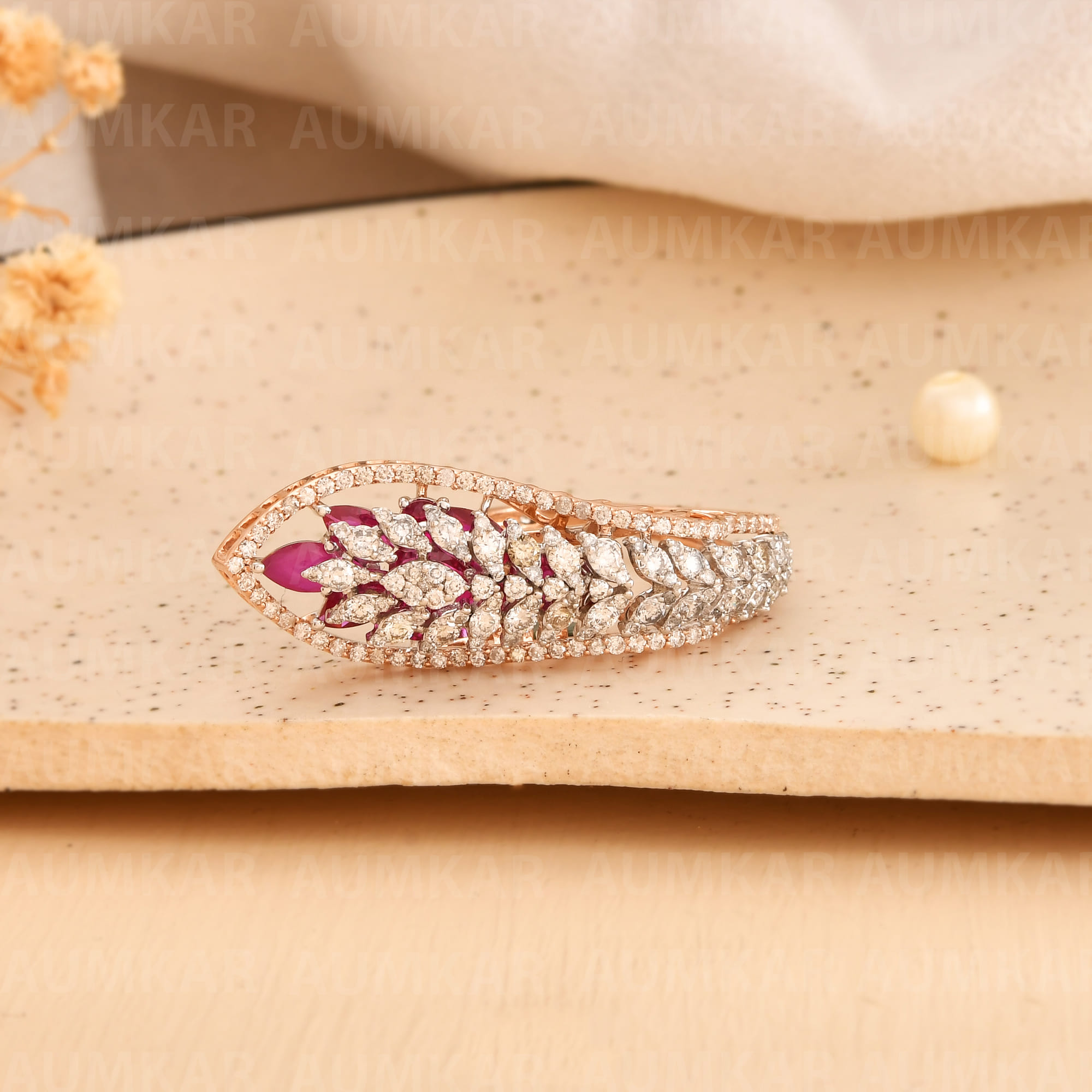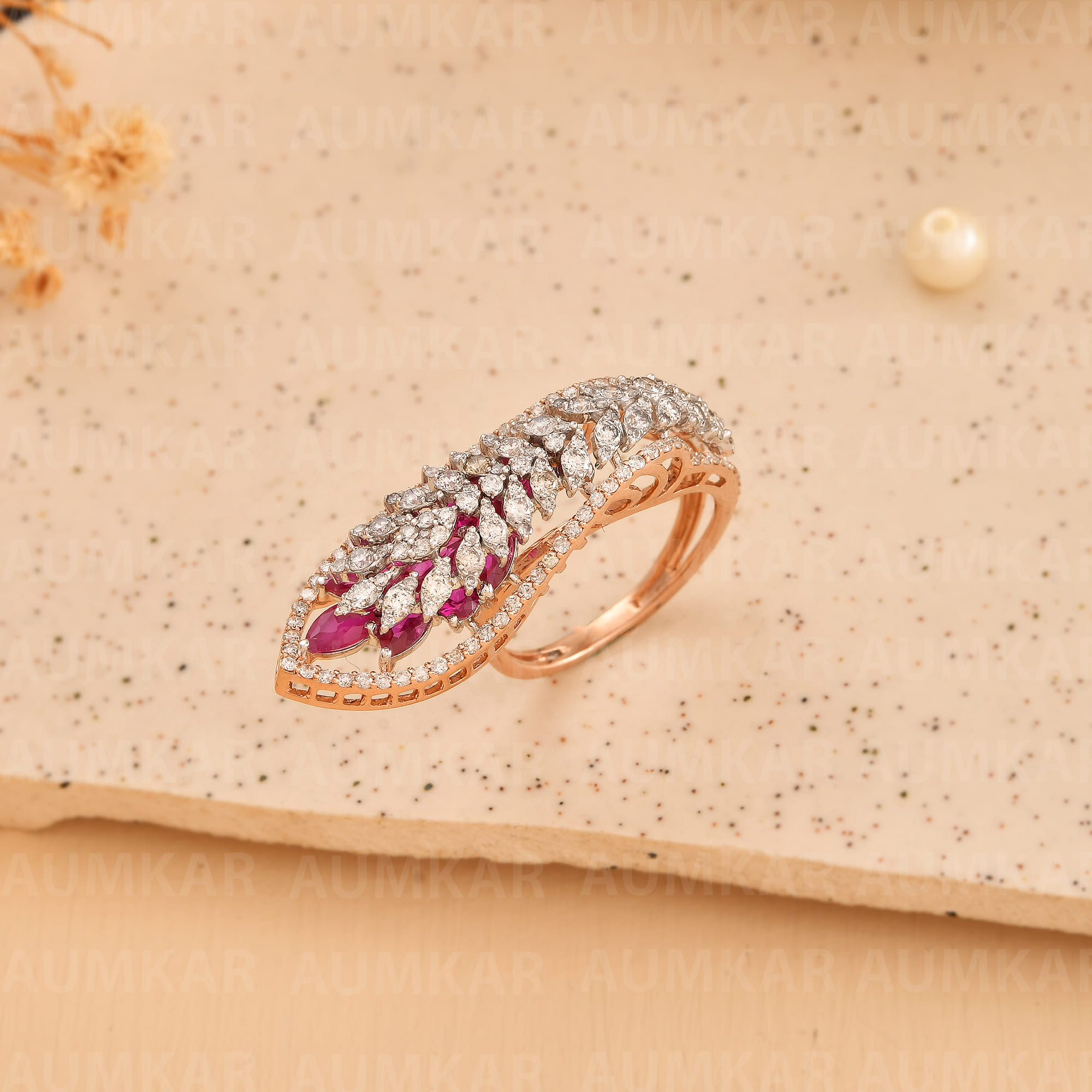 Women's Diamond Peacock Ring Rose Gold Unique Design