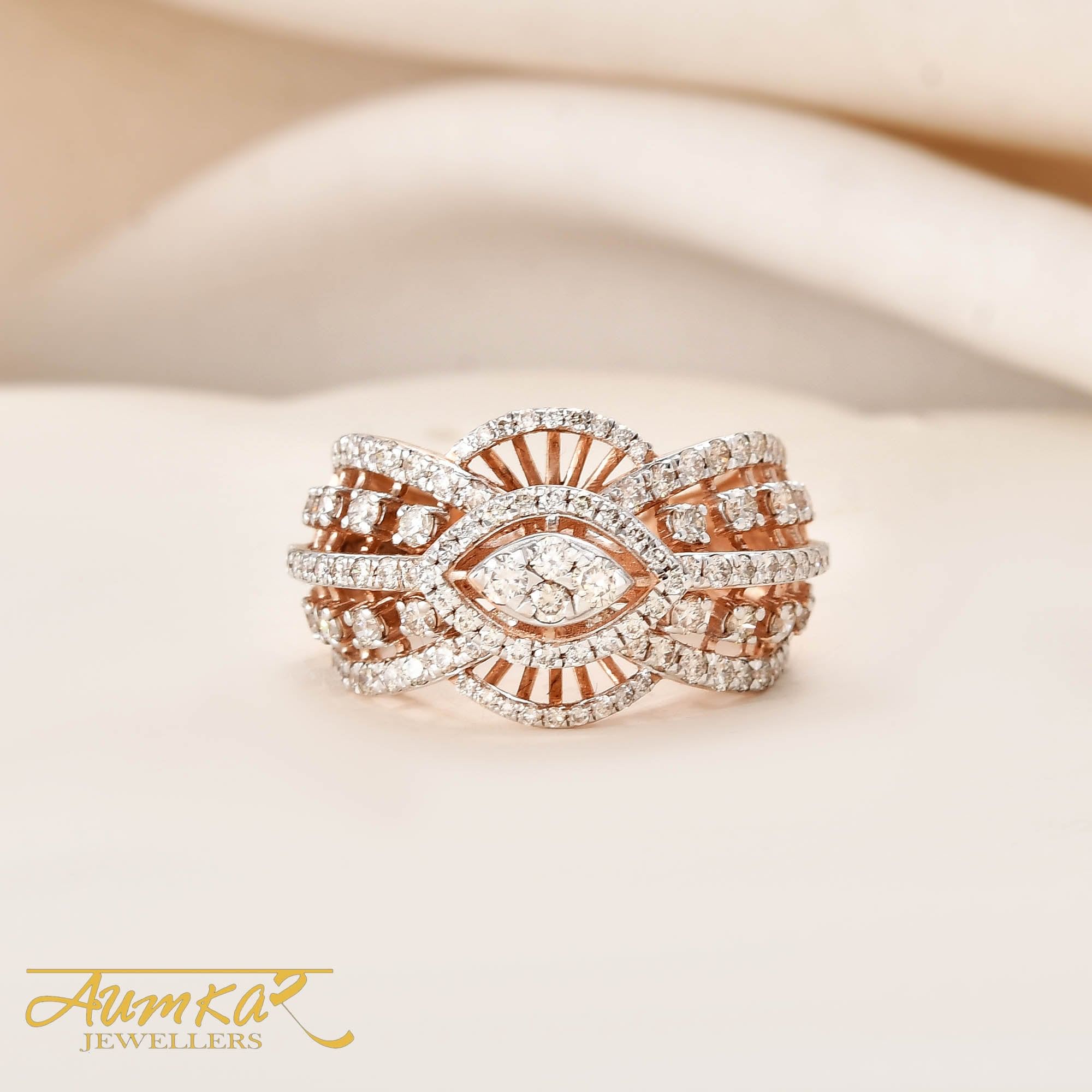Stunning diamond wedding ring featuring intricate rose gold design. Perfect engagement or anniversary gift with customisable options. Natural diamonds create timeless elegance for daily wear.