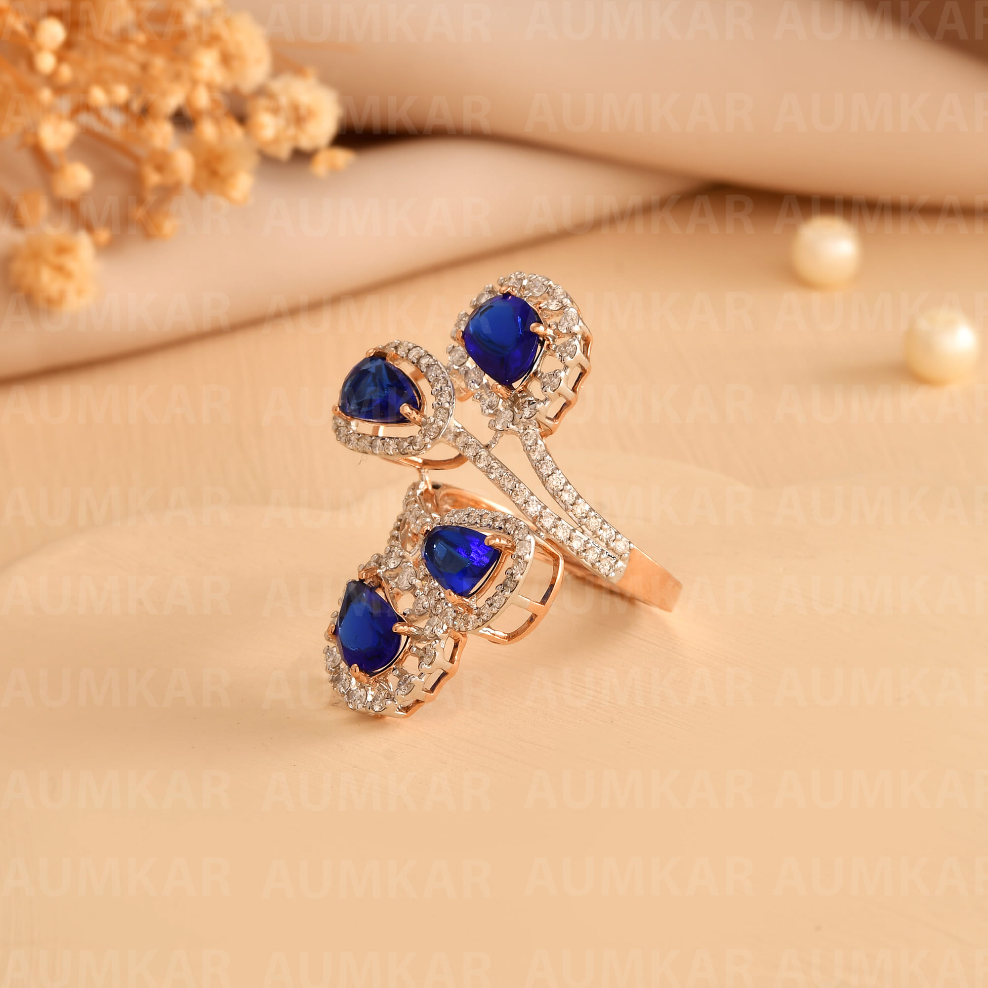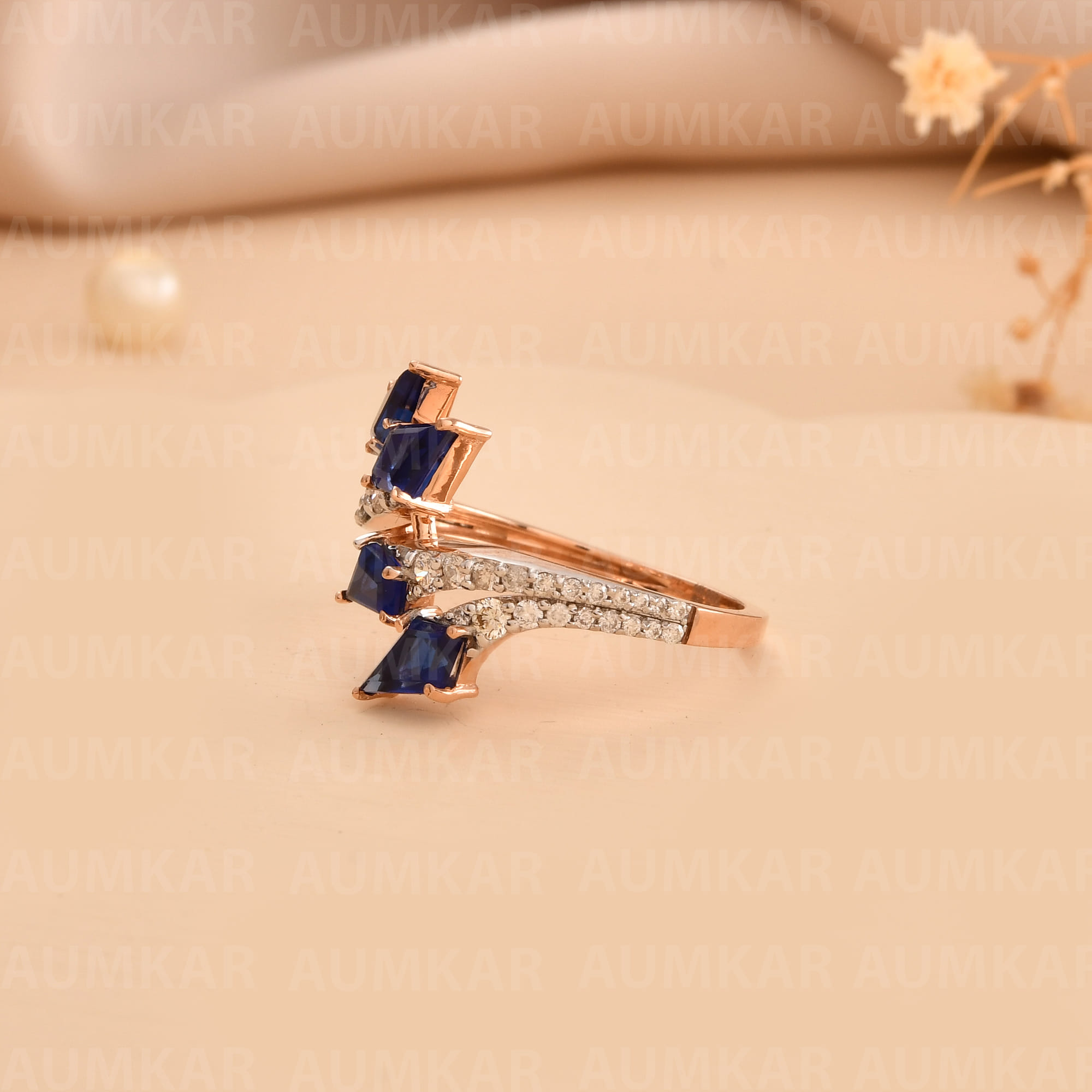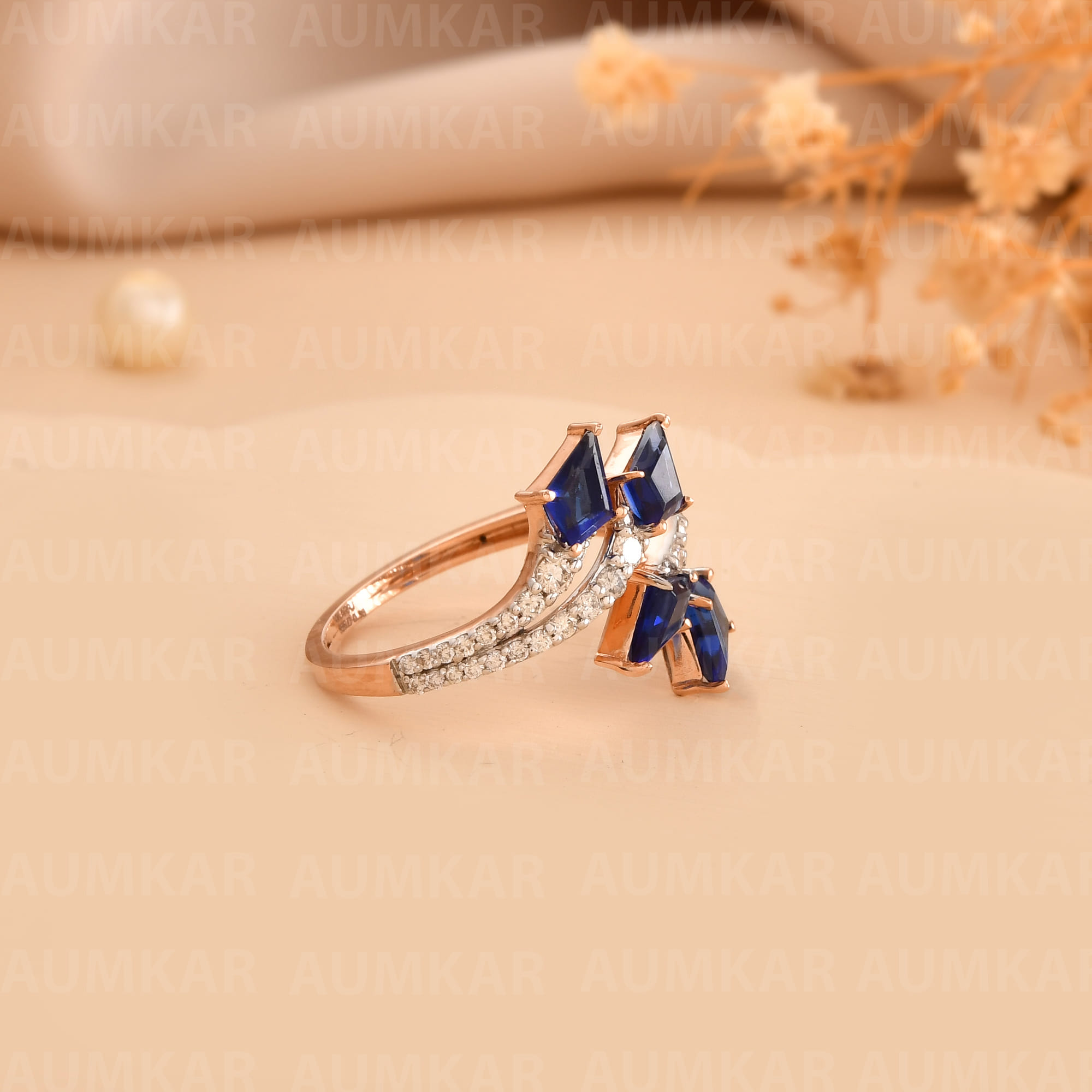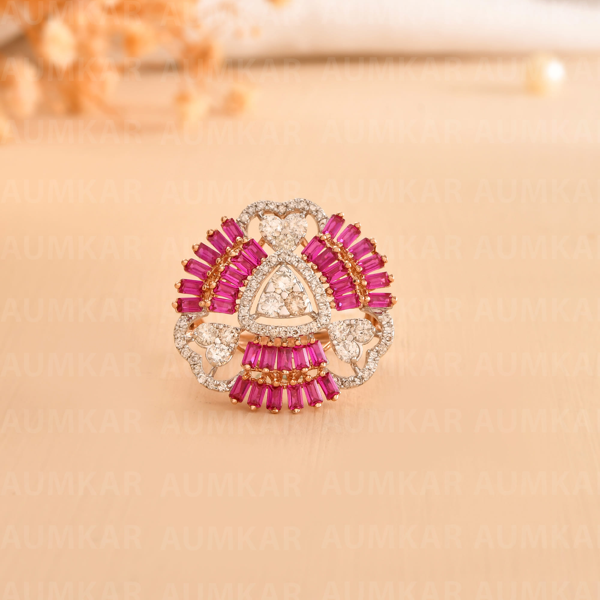 Rose Gold Diamond Triangle Ring For Women Engagement