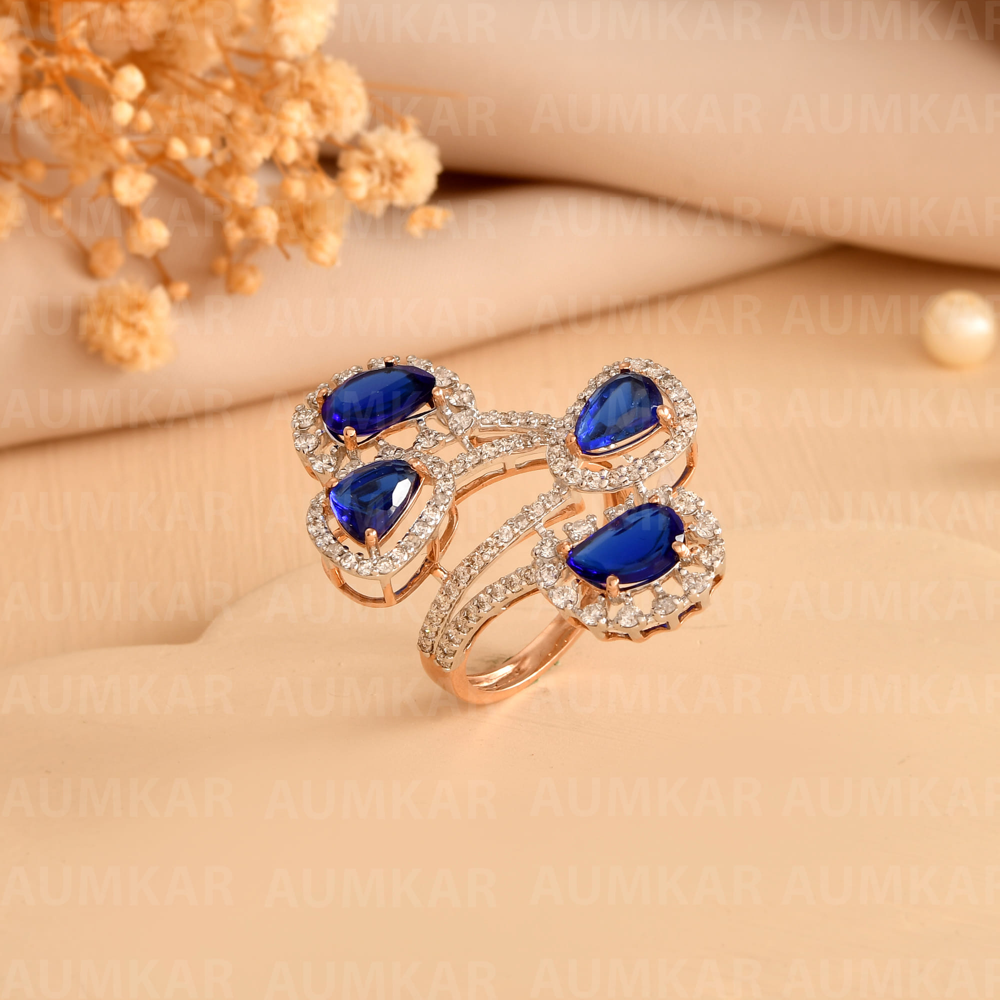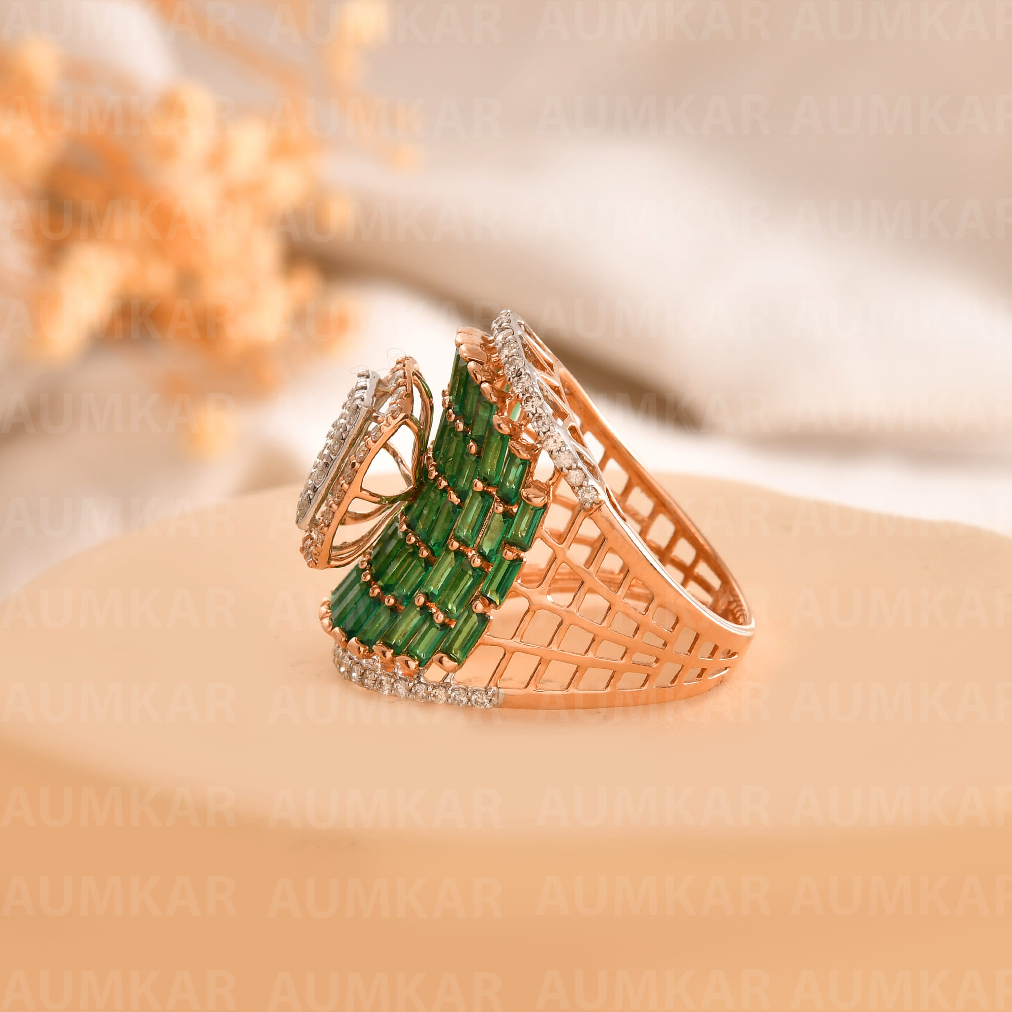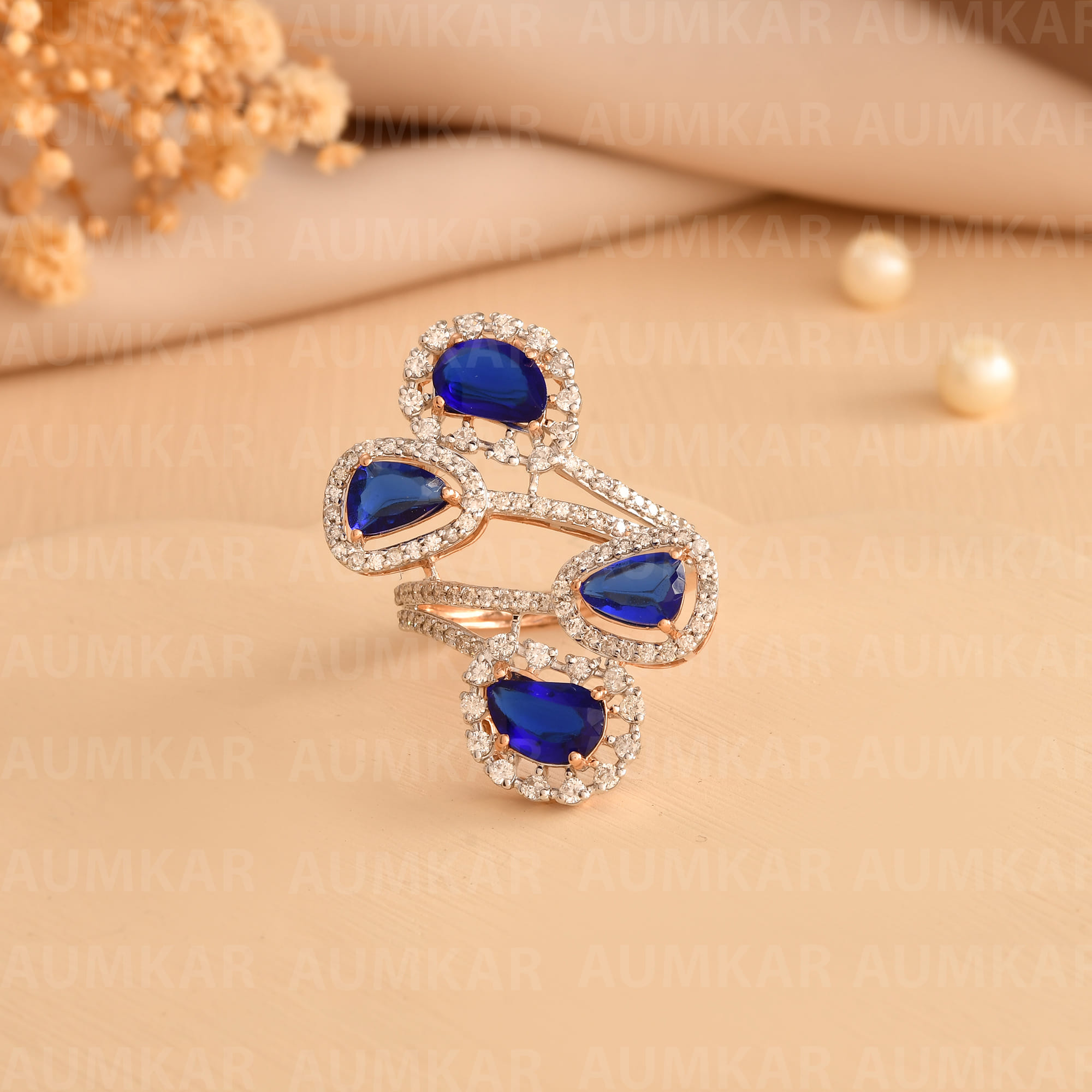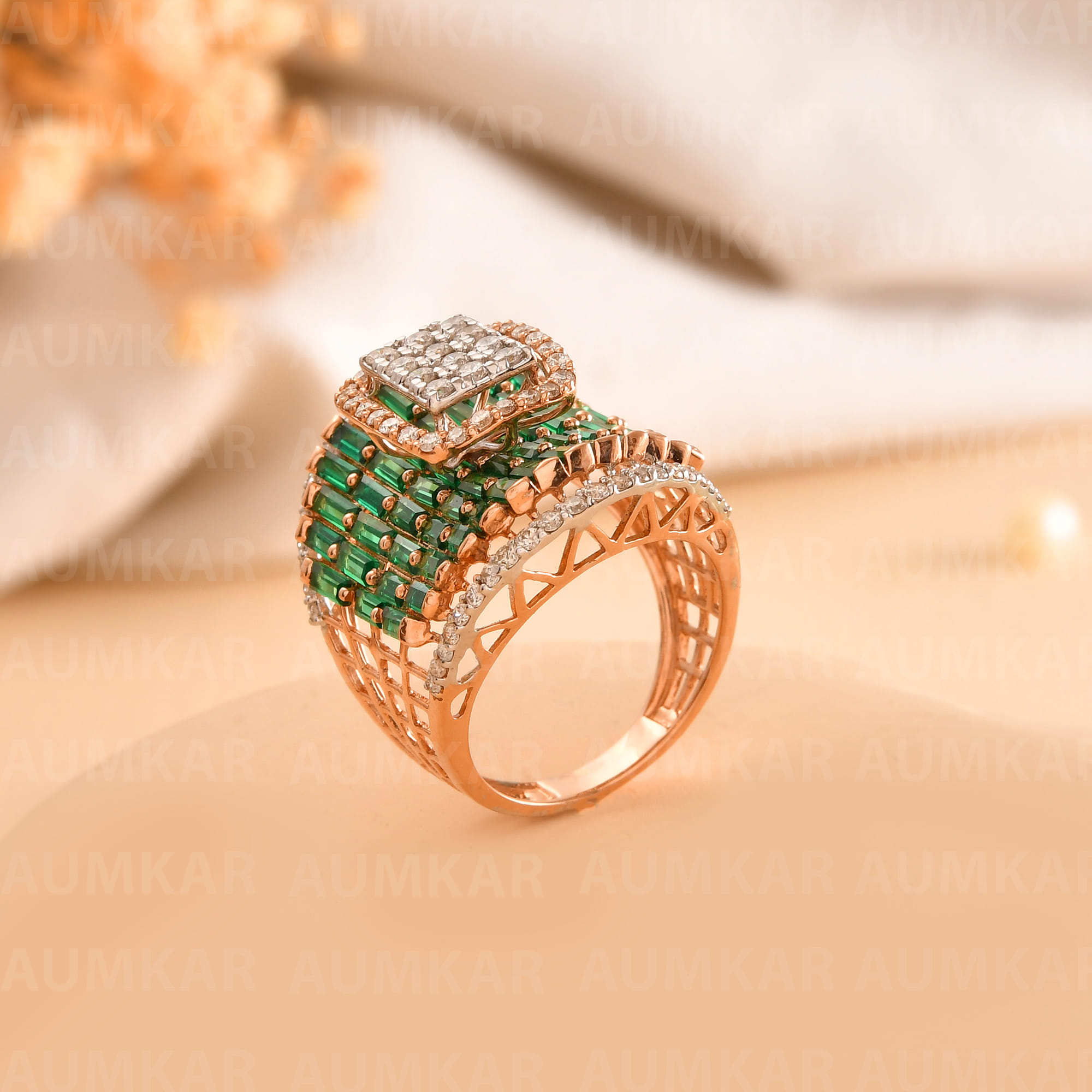 Rose Gold Diamond Triangle Ring For Women Engagement