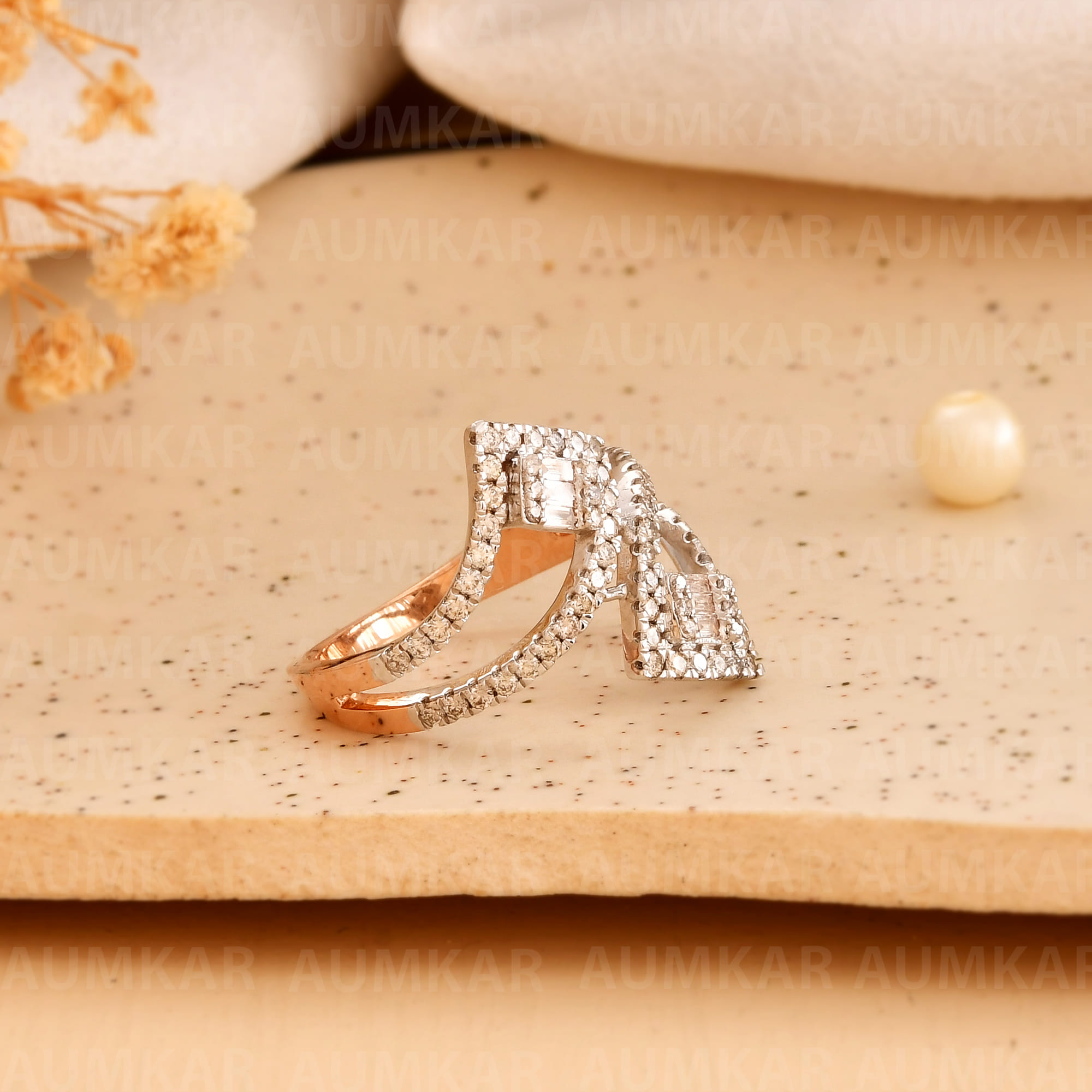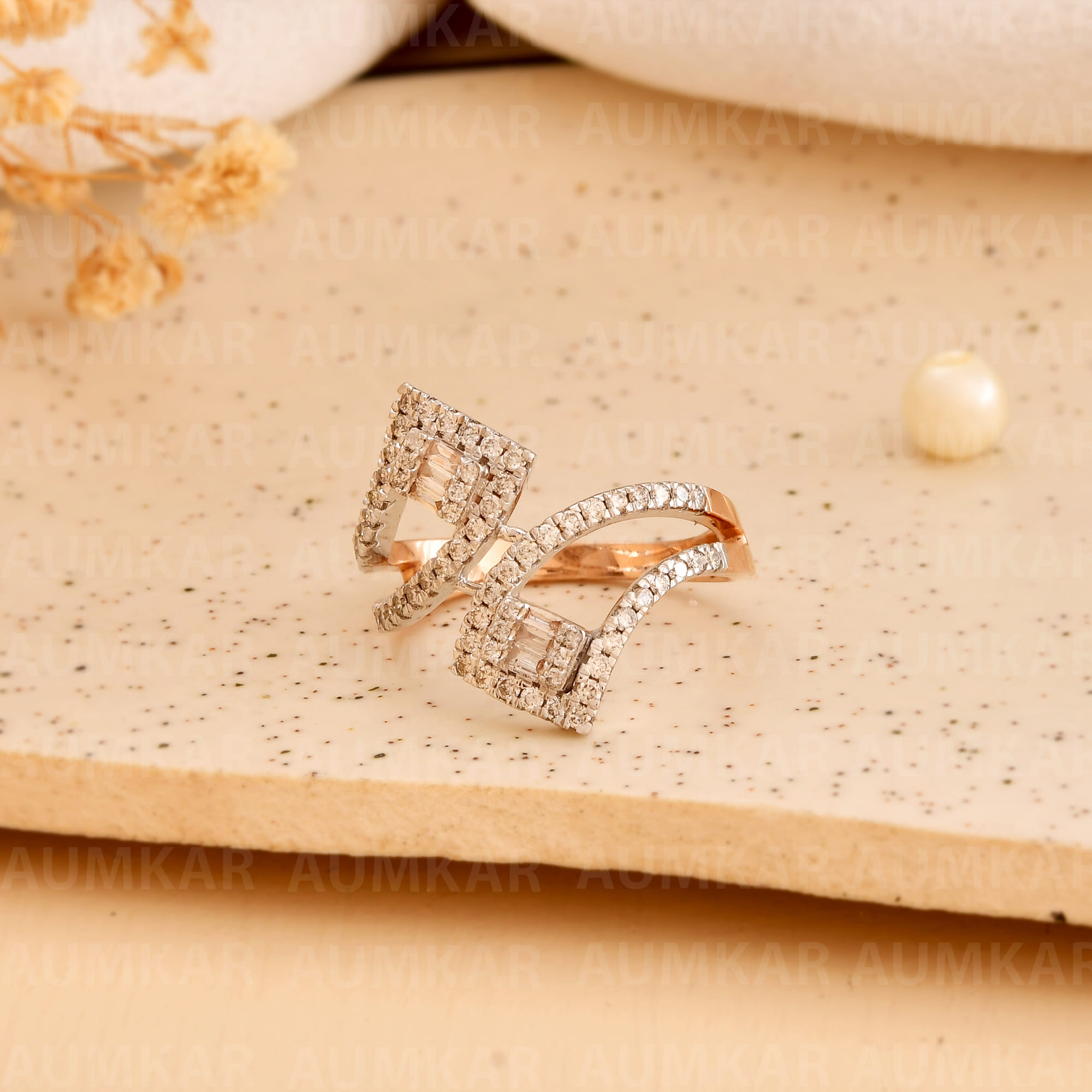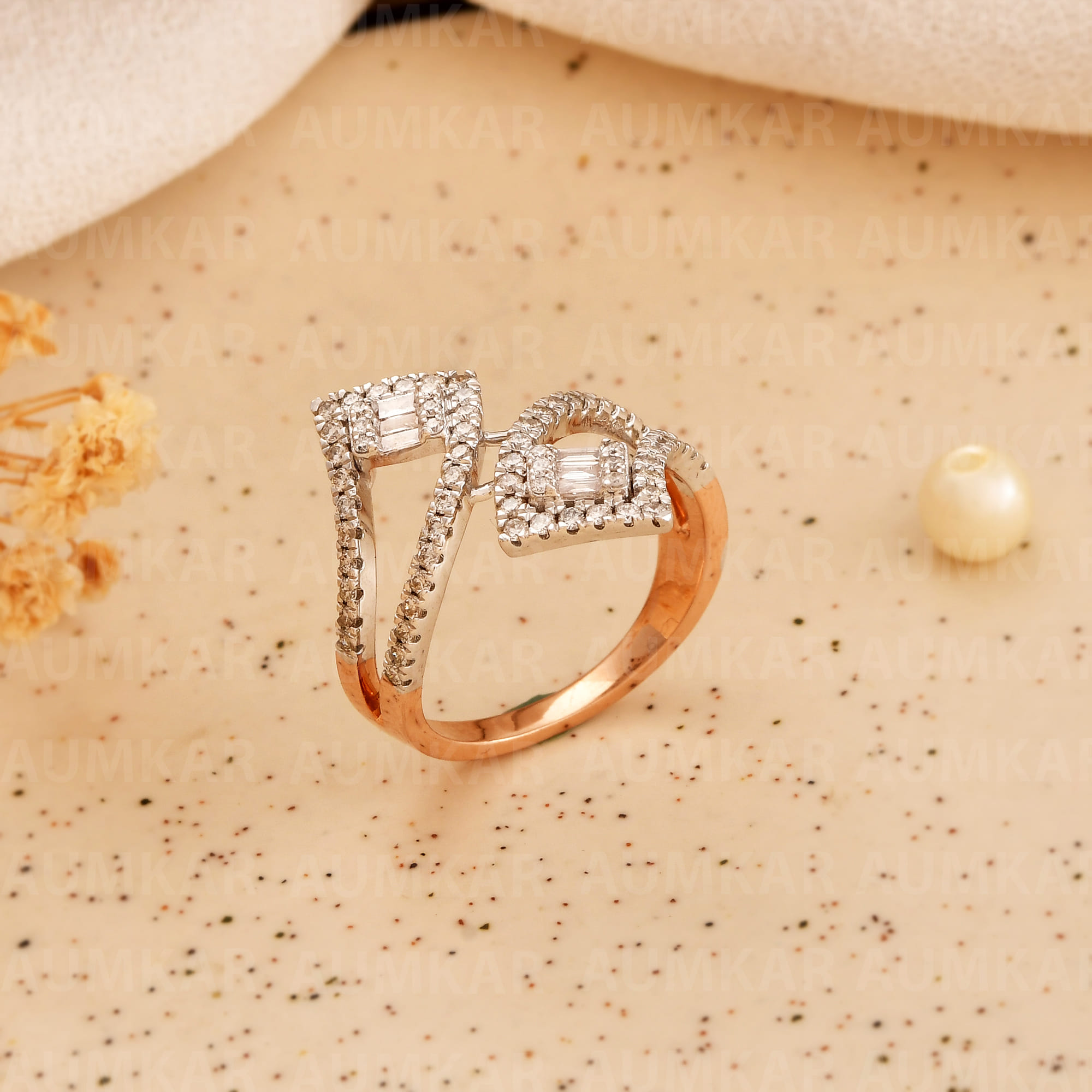 Women's Diamond Bypass Ring Rose Gold Engagement Wedding Band