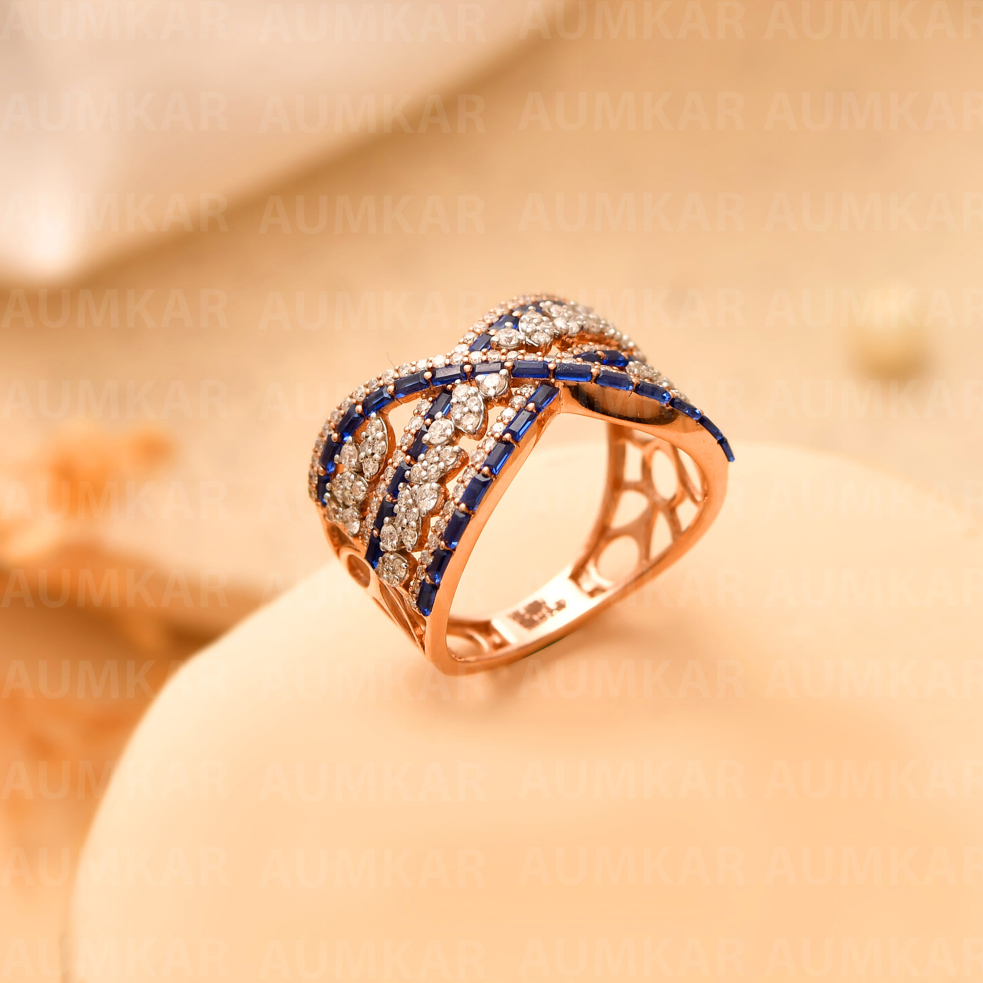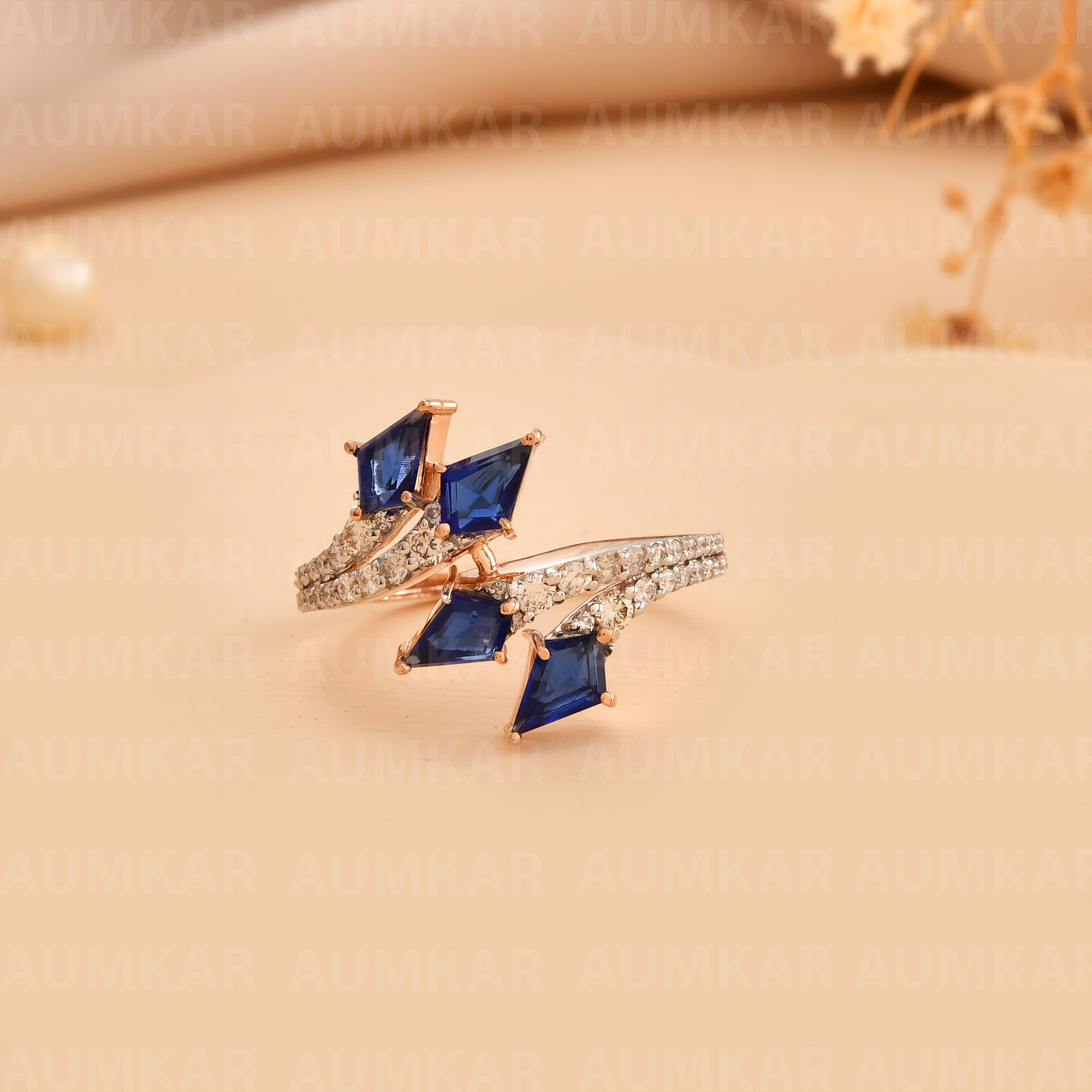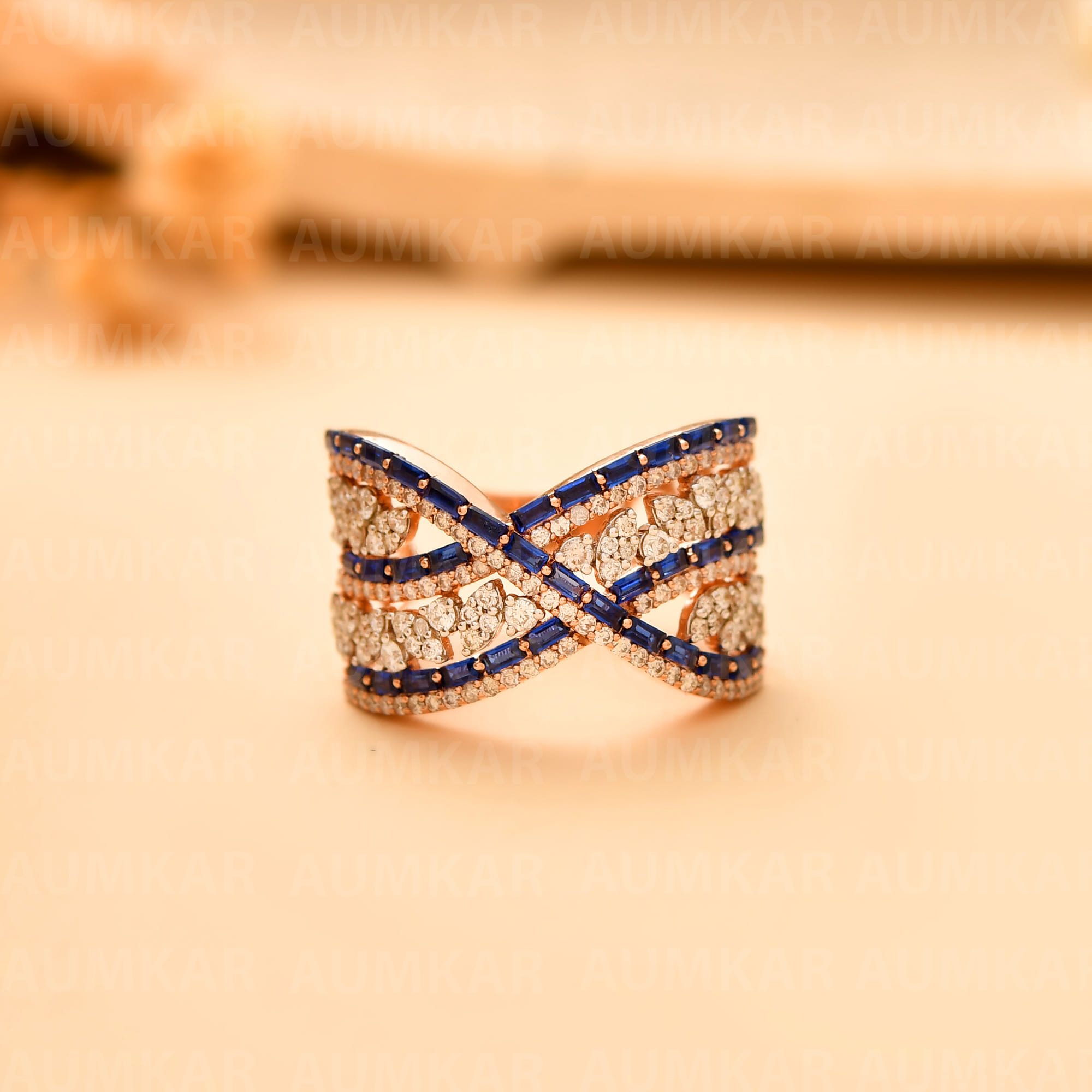 Women's Diamond Bypass Ring Rose Gold Engagement Wedding Band