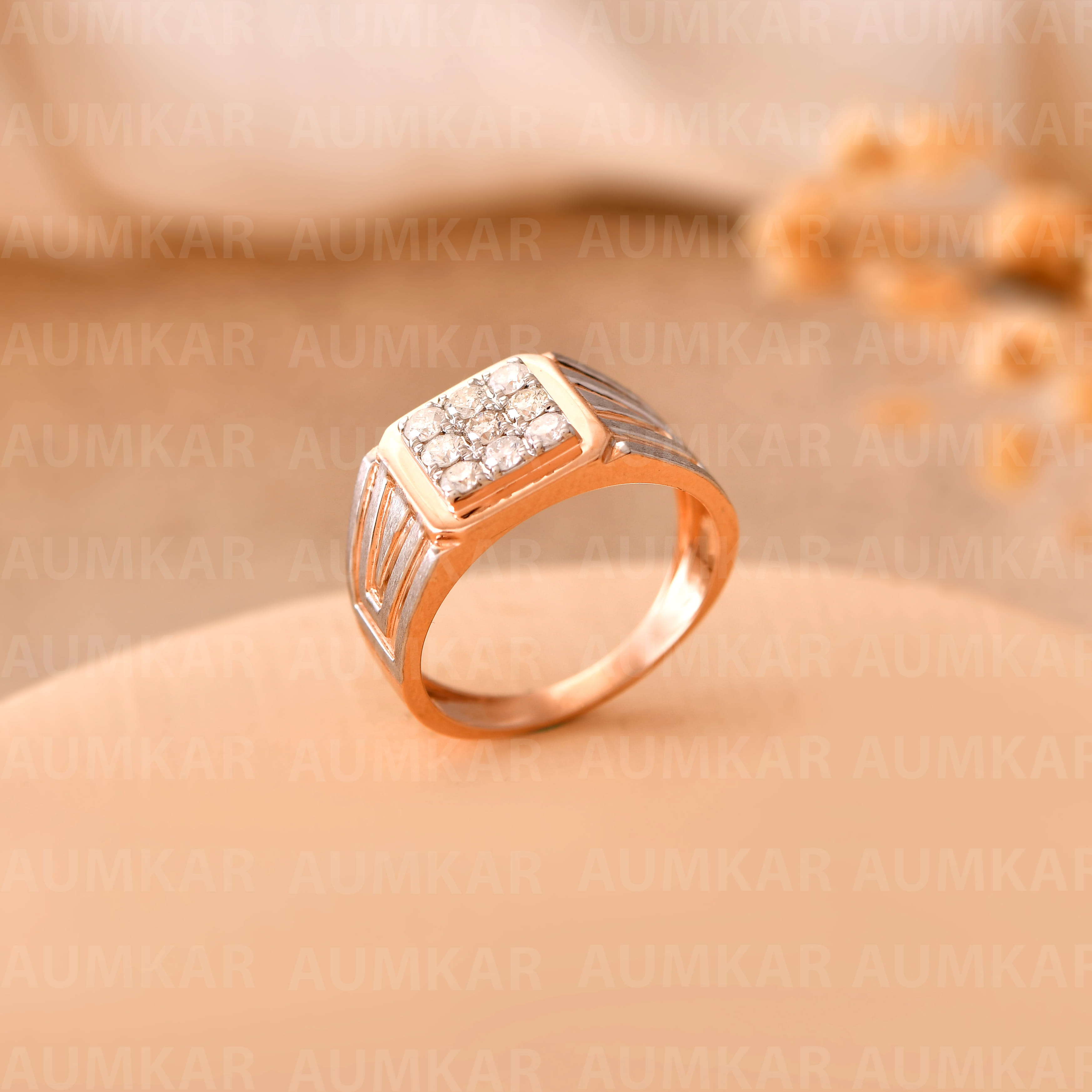 Men's Diamond Gold Ring Unique Square Cluster Design